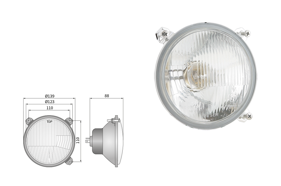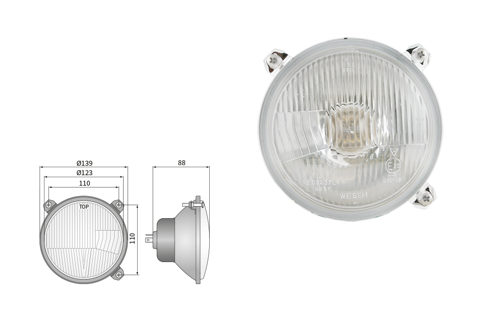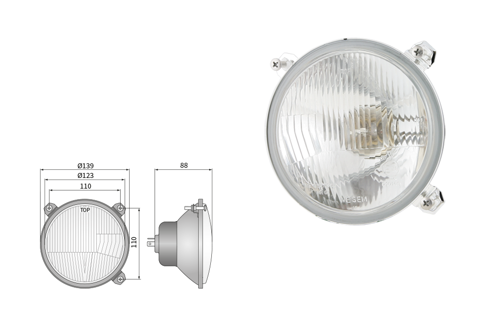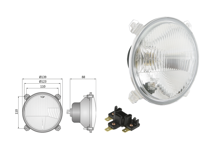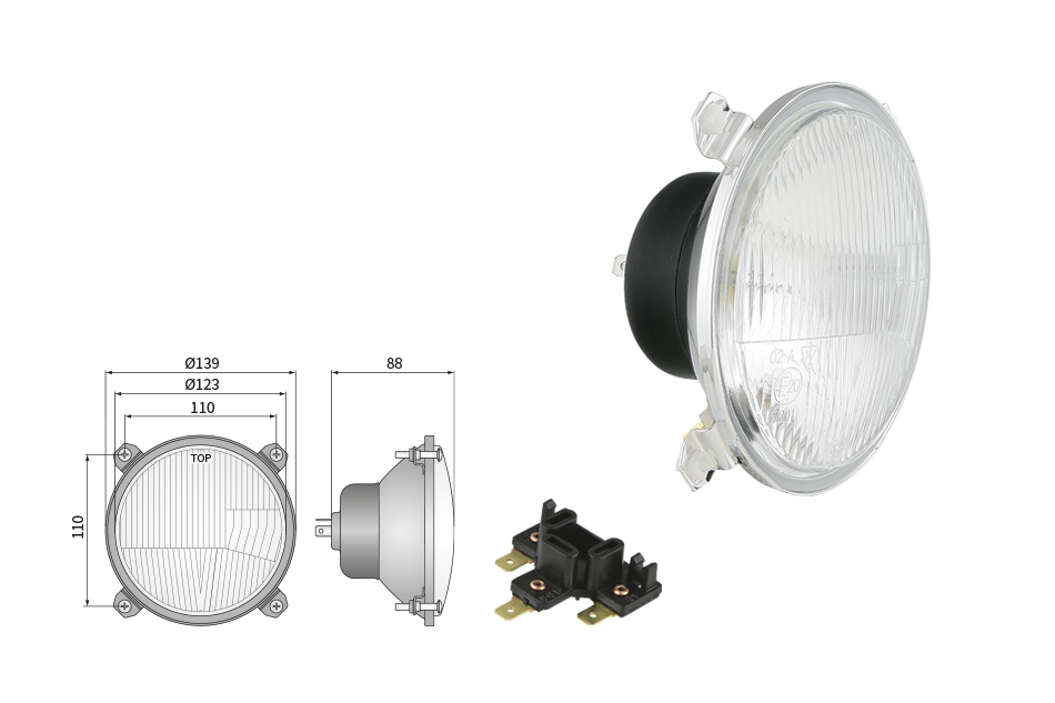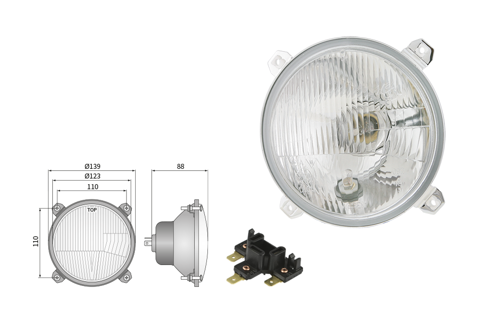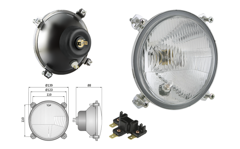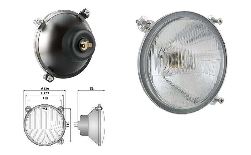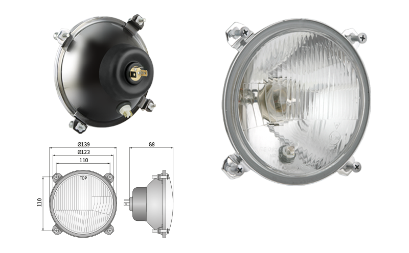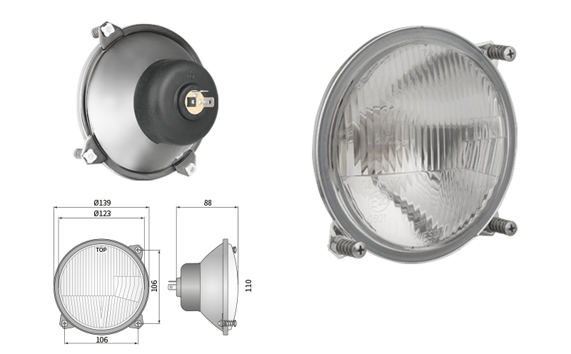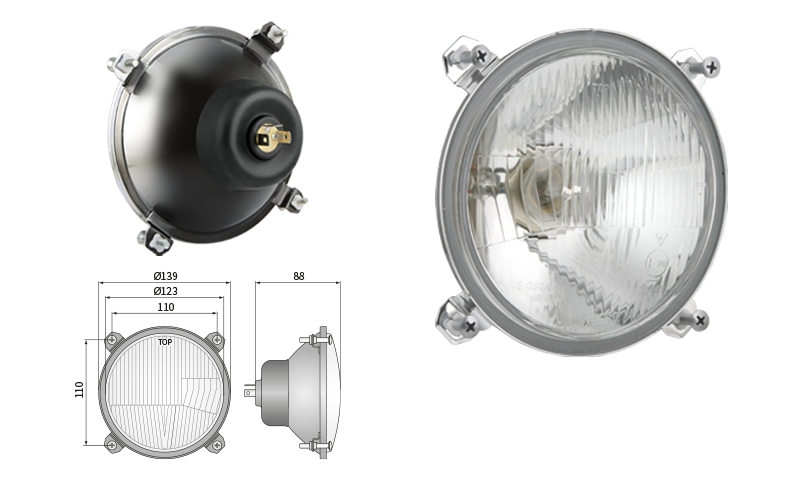 Far pentru, tip R2 - trafic pe partea dreapta (lumini: fază lungă, fază scurtă, poziție)