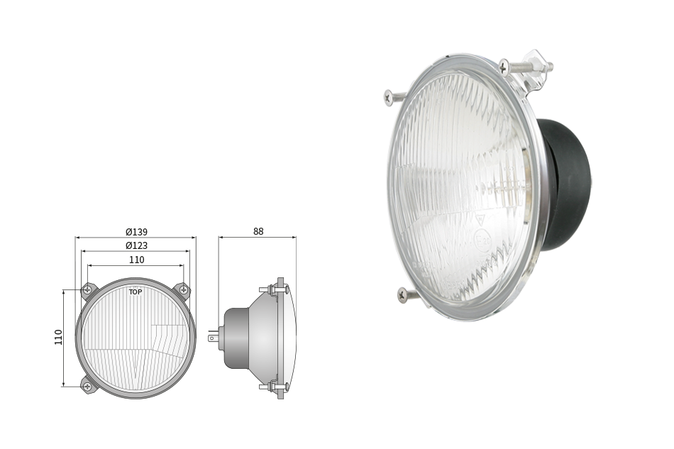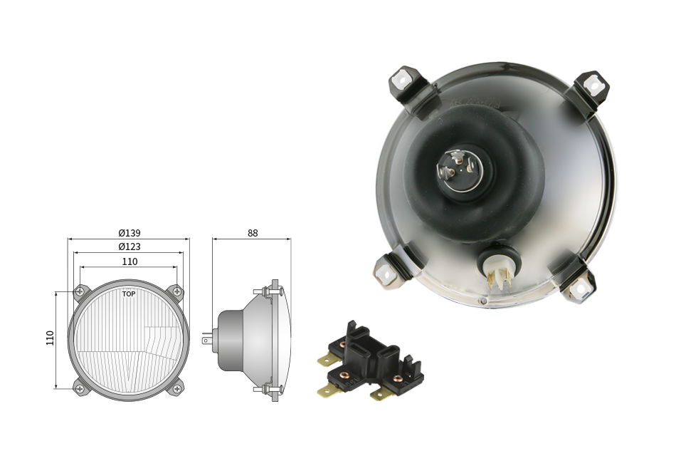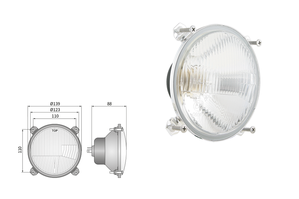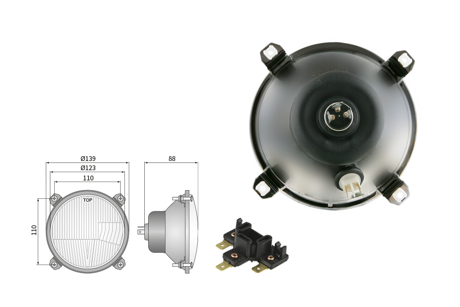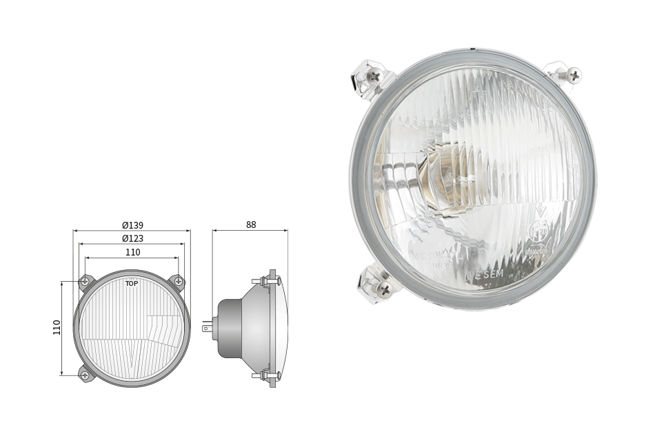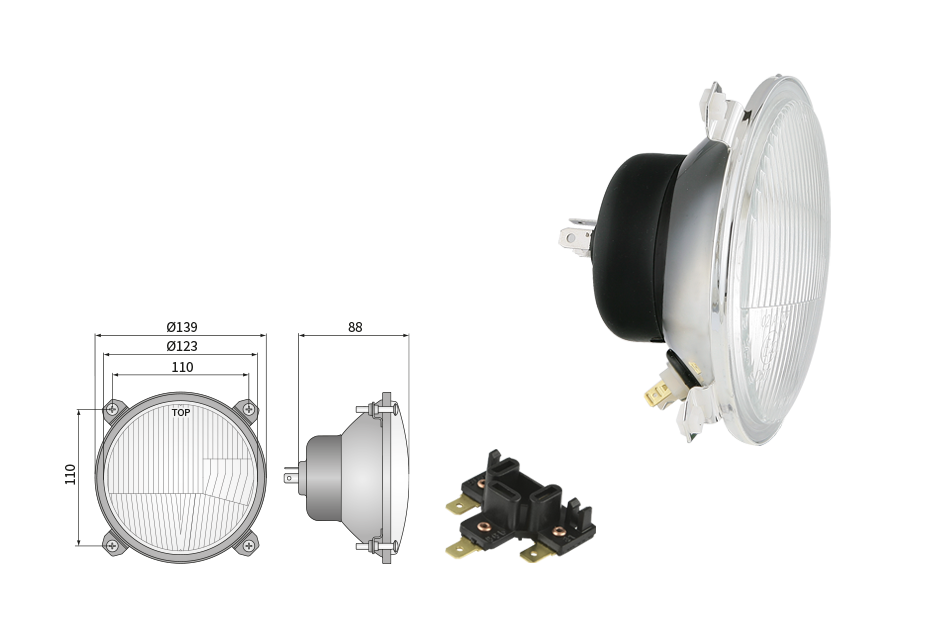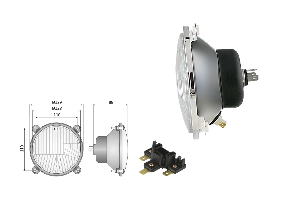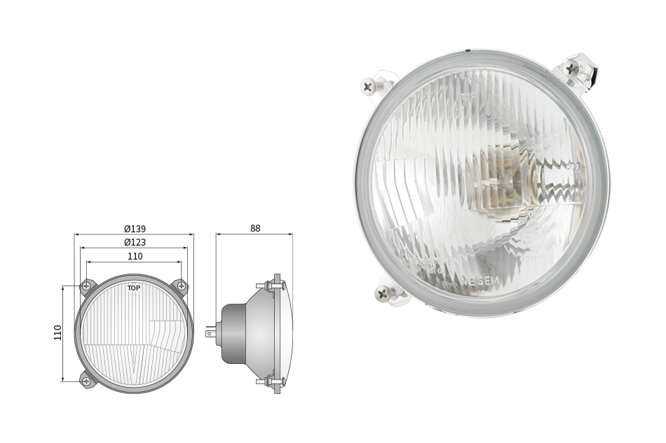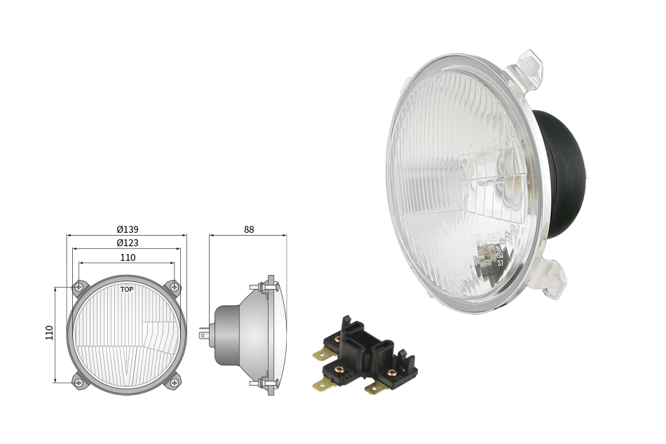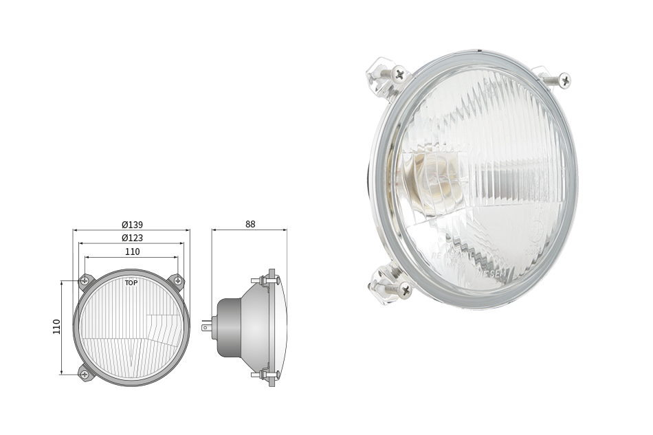 Far pentru, tip R2 - trafic pe partea dreapta (lumini: fază lungă, fază scurtă, poziție)