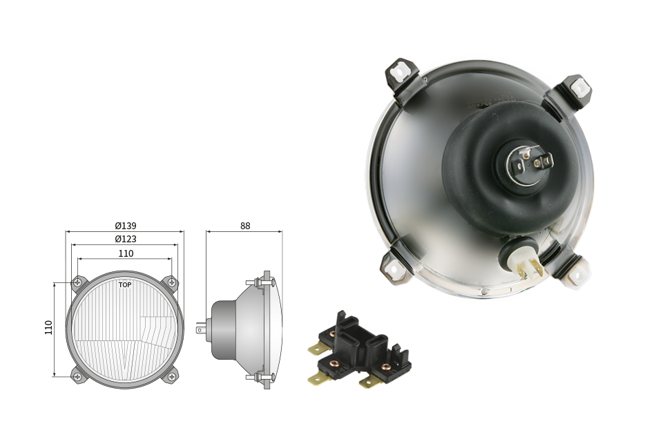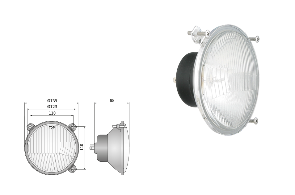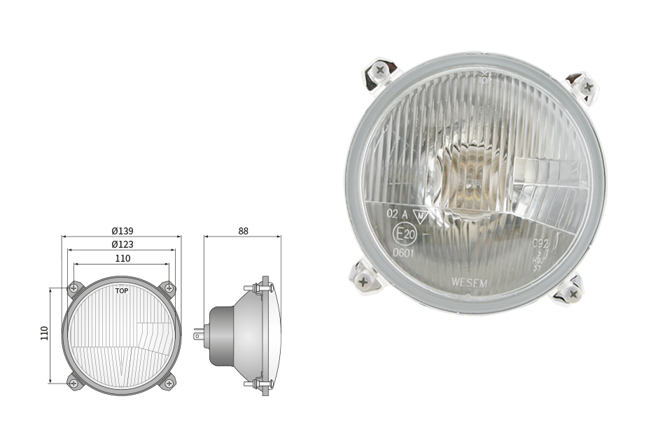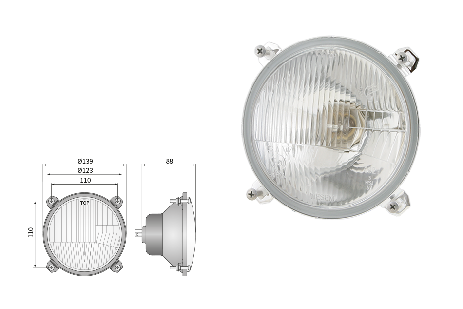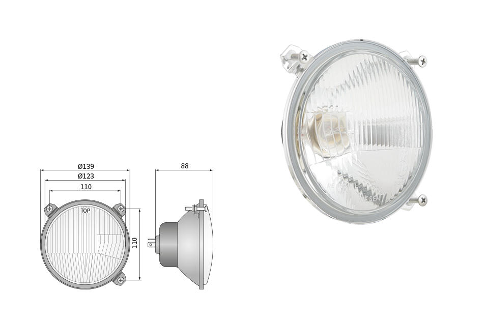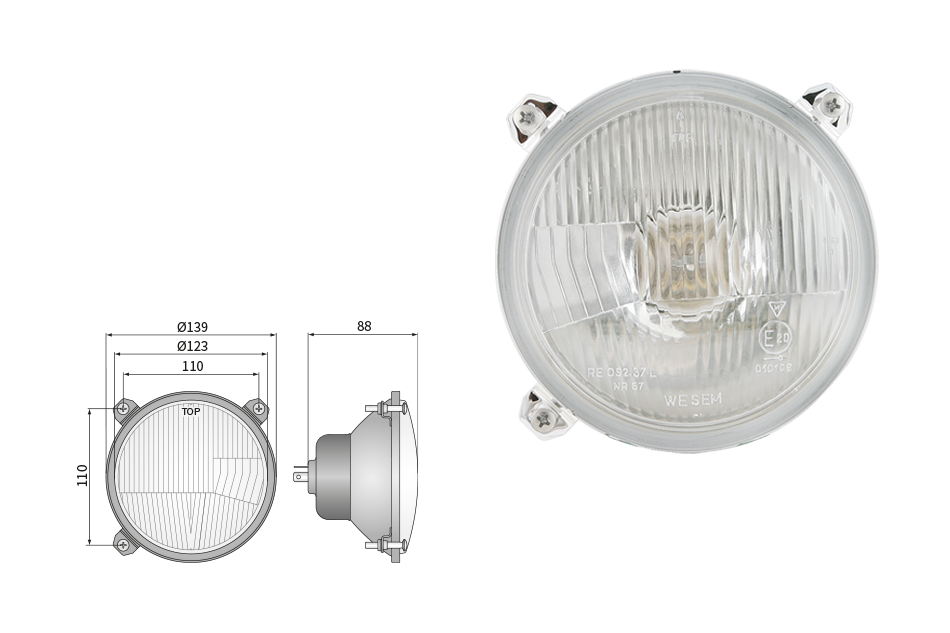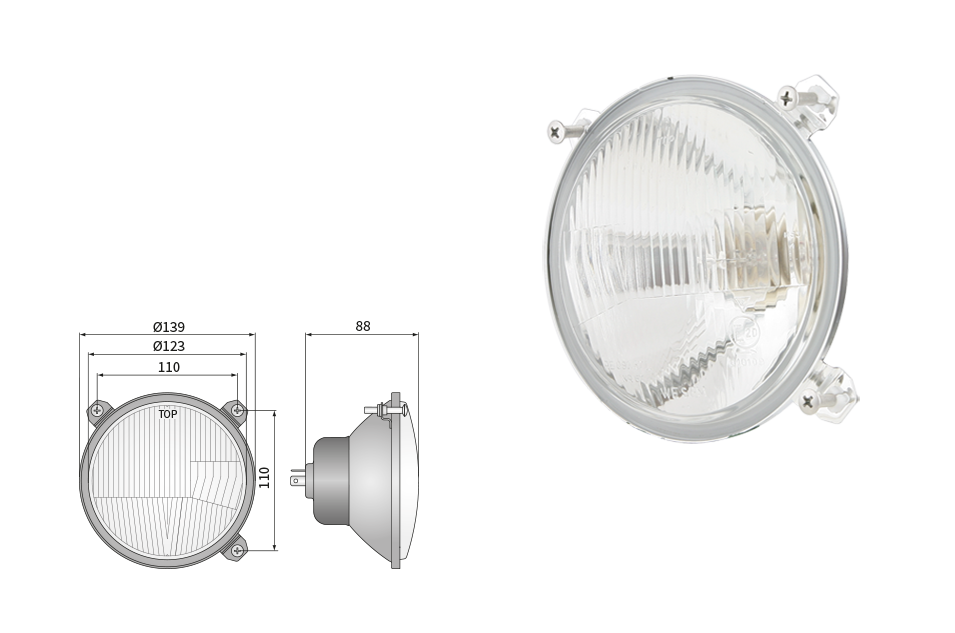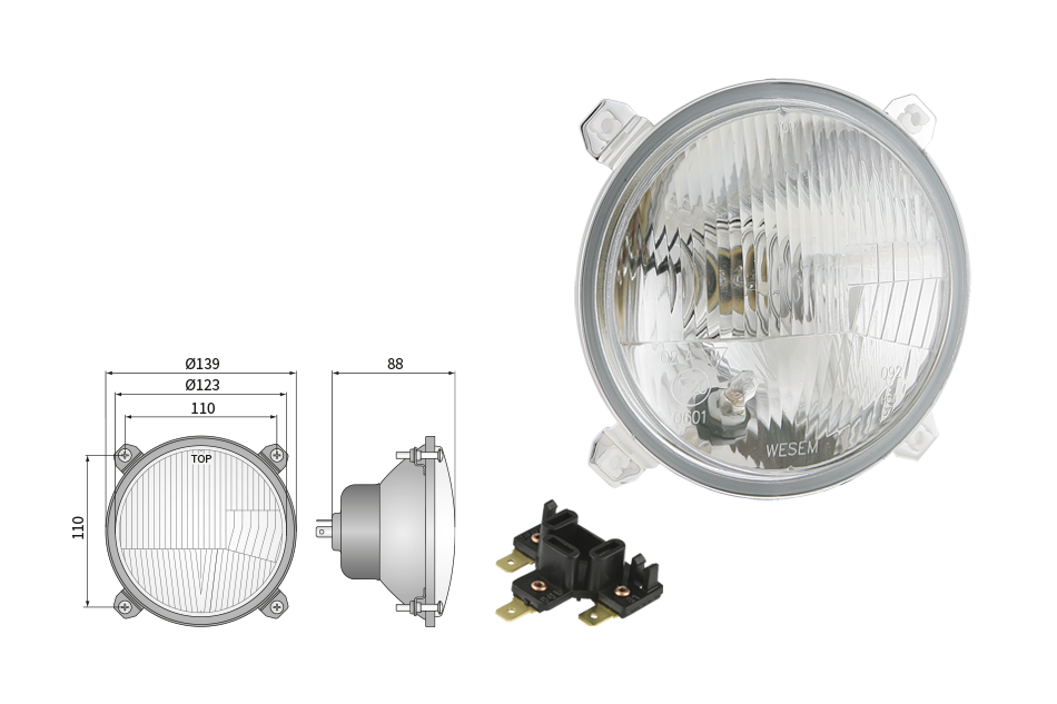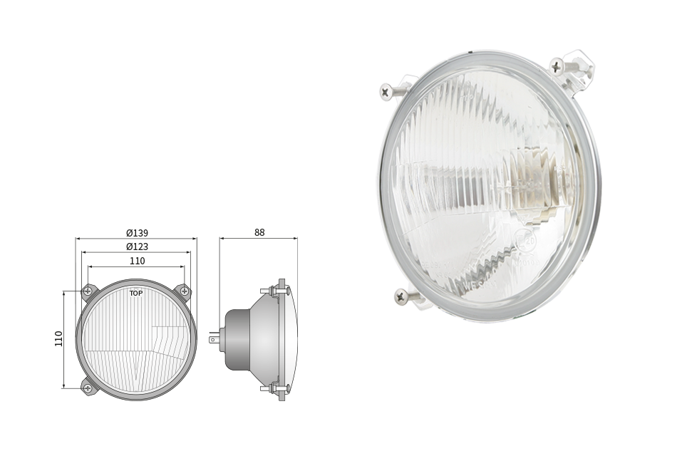 Far pentru, tip R2 - trafic pe partea dreapta (lumini: fază lungă, fază scurtă, poziție)