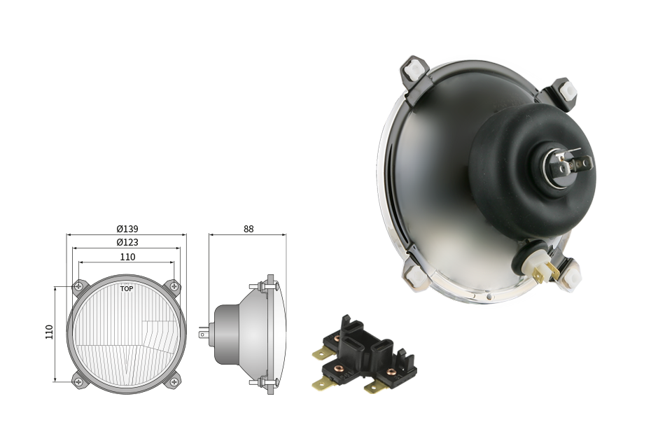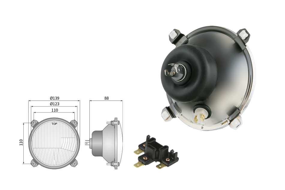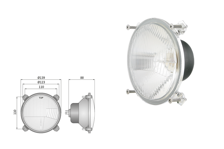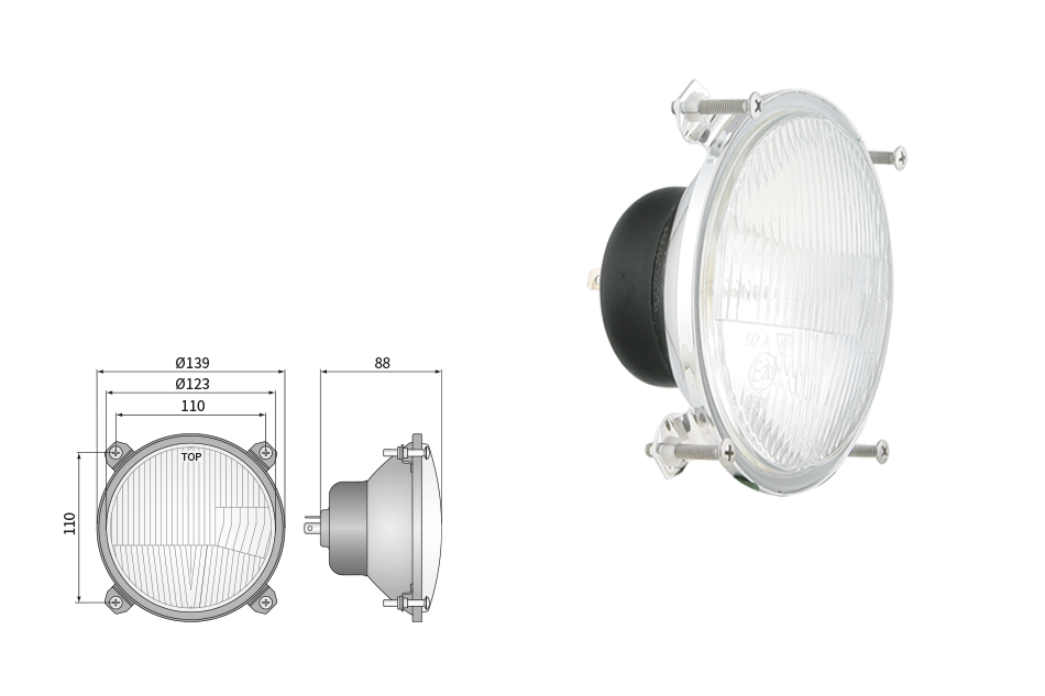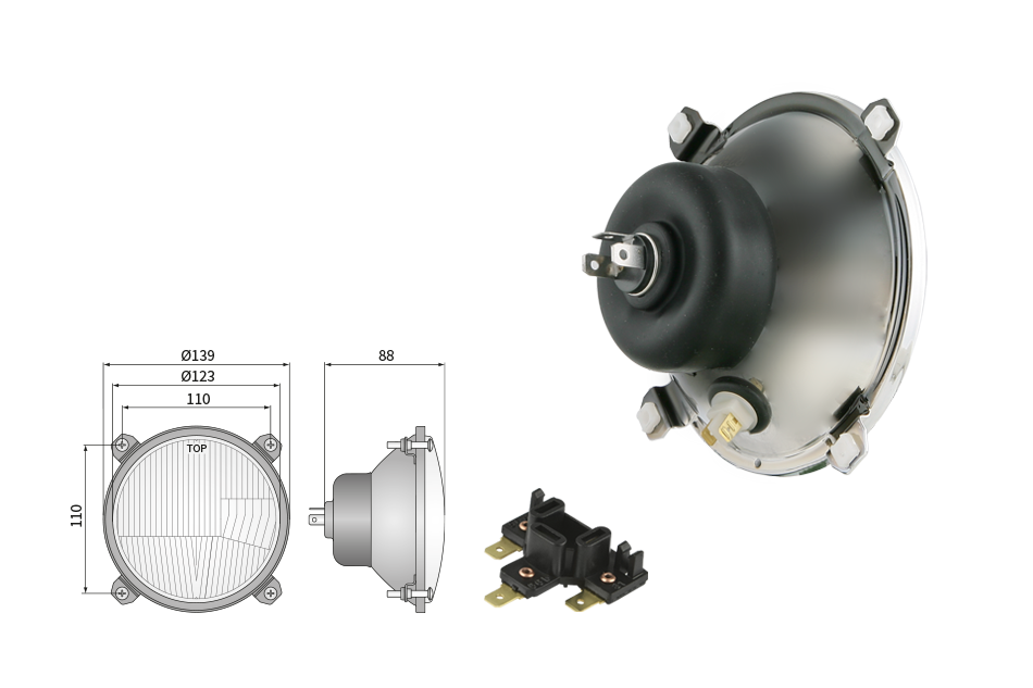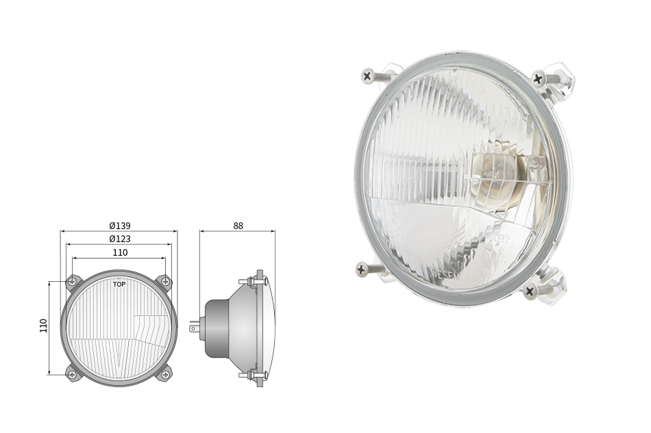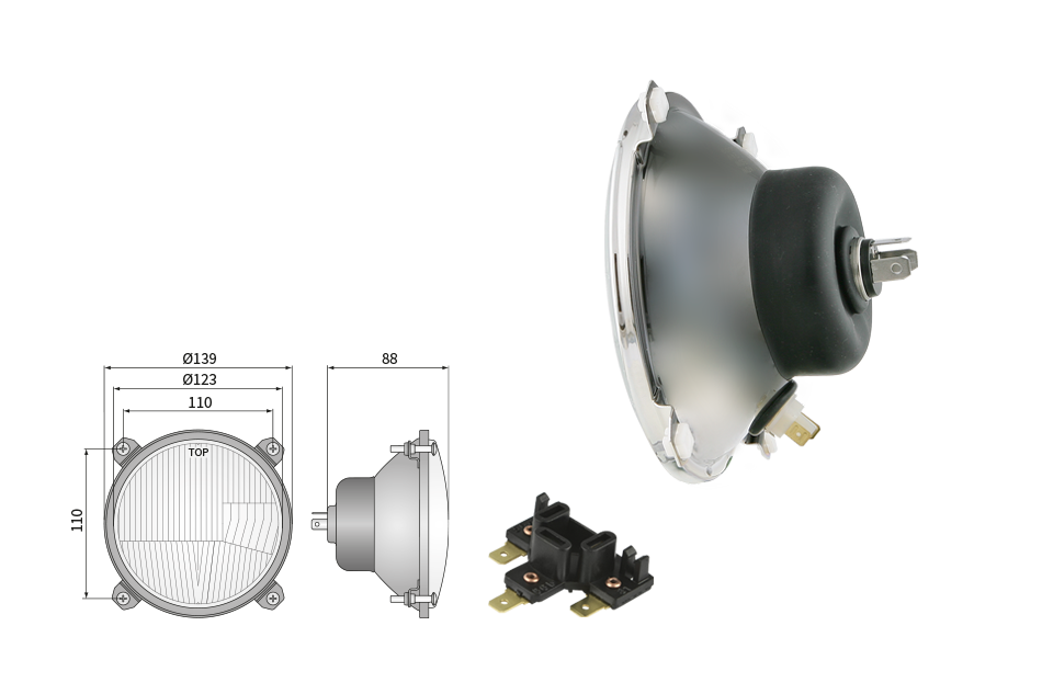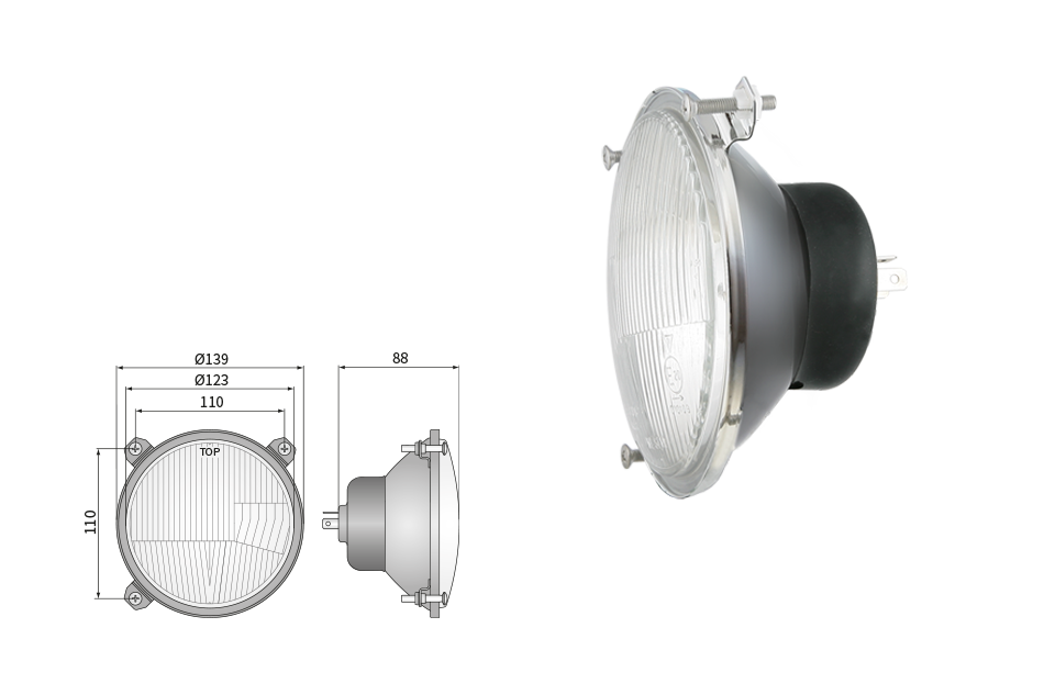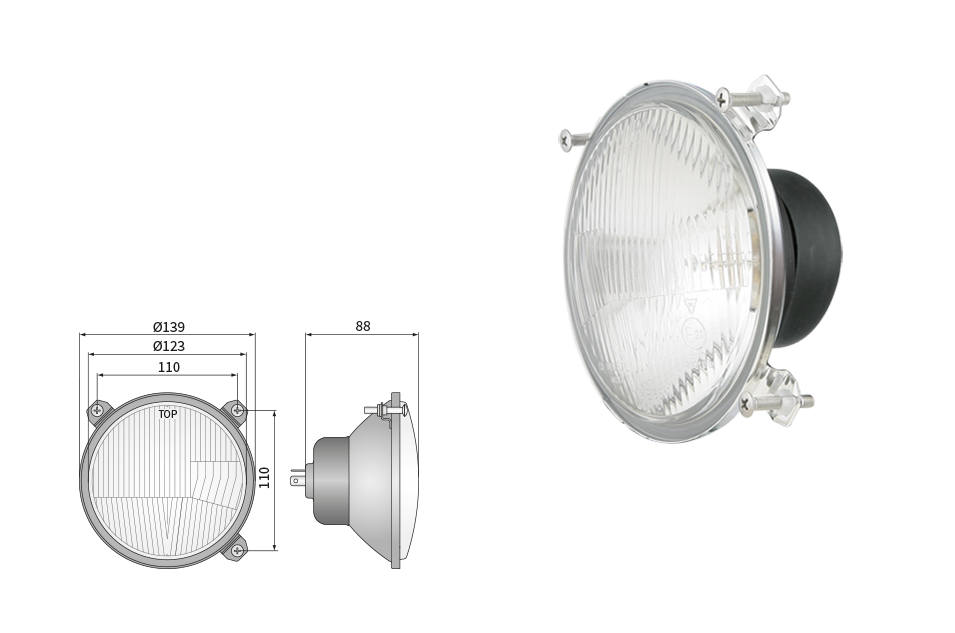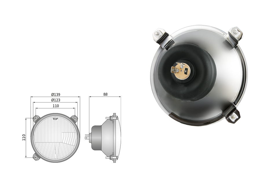 Far pentru, tip R2 - trafic pe partea dreapta (lumini: fază lungă, fază scurtă, poziție)