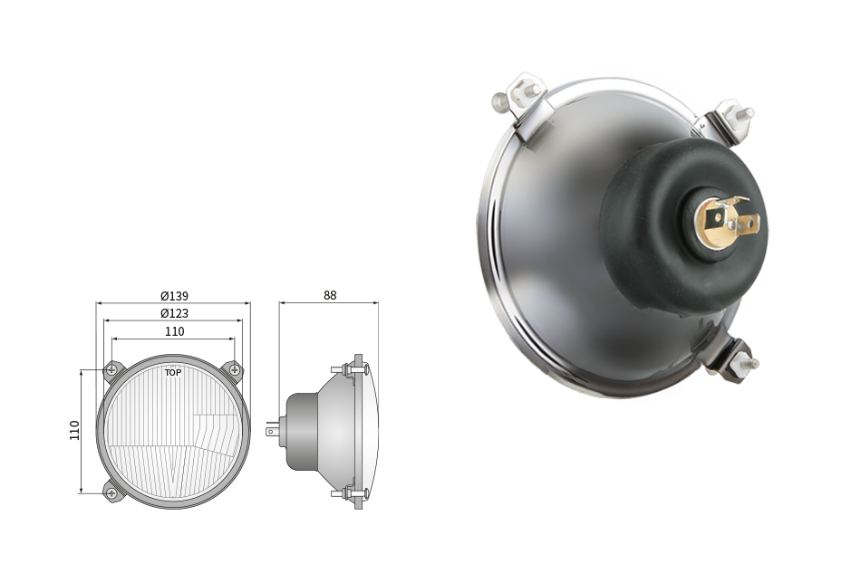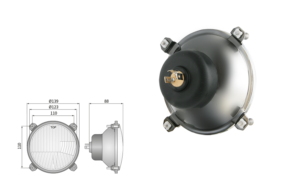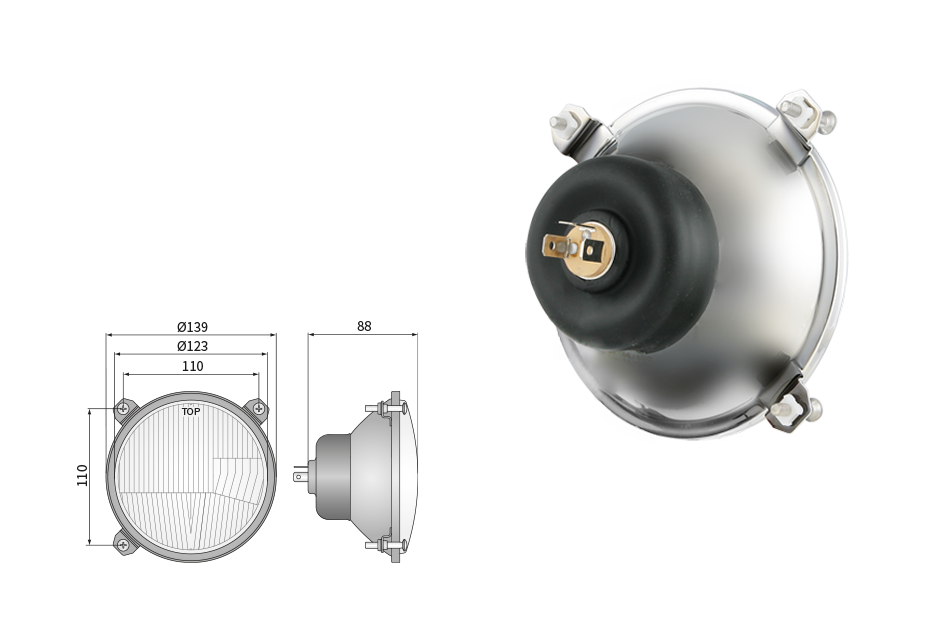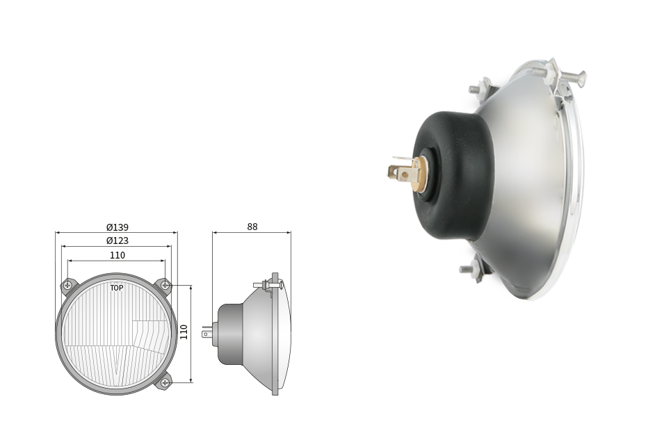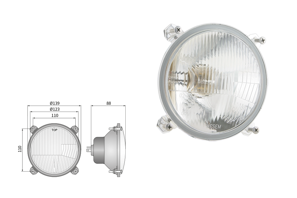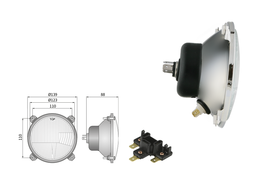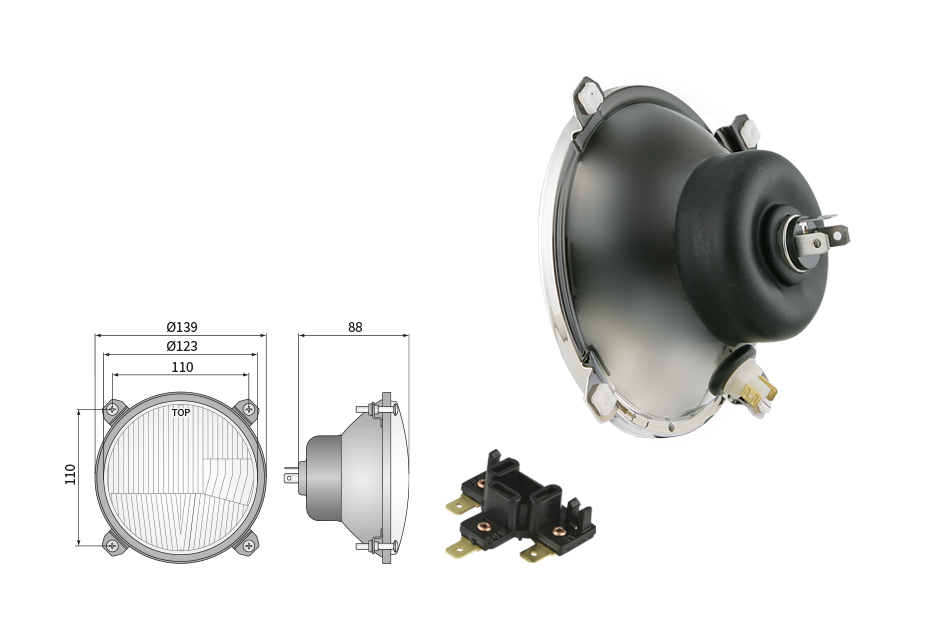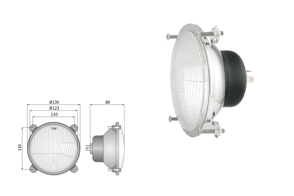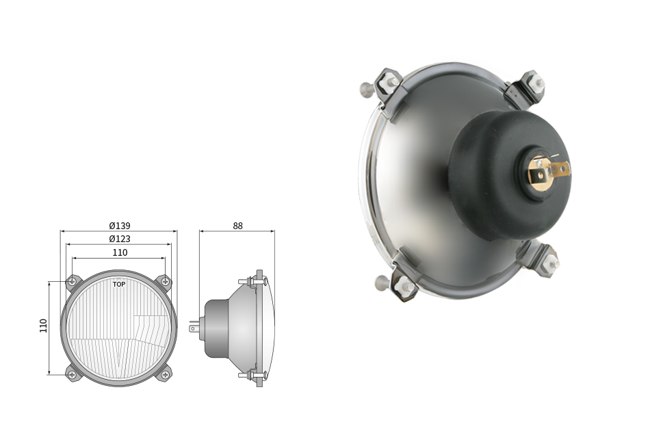 Far pentru, tip R2 - trafic pe partea dreapta (lumini: fază lungă, fază scurtă, poziție)
