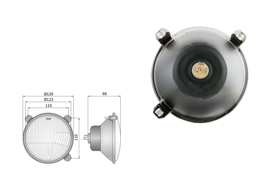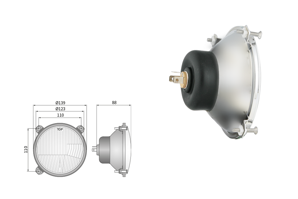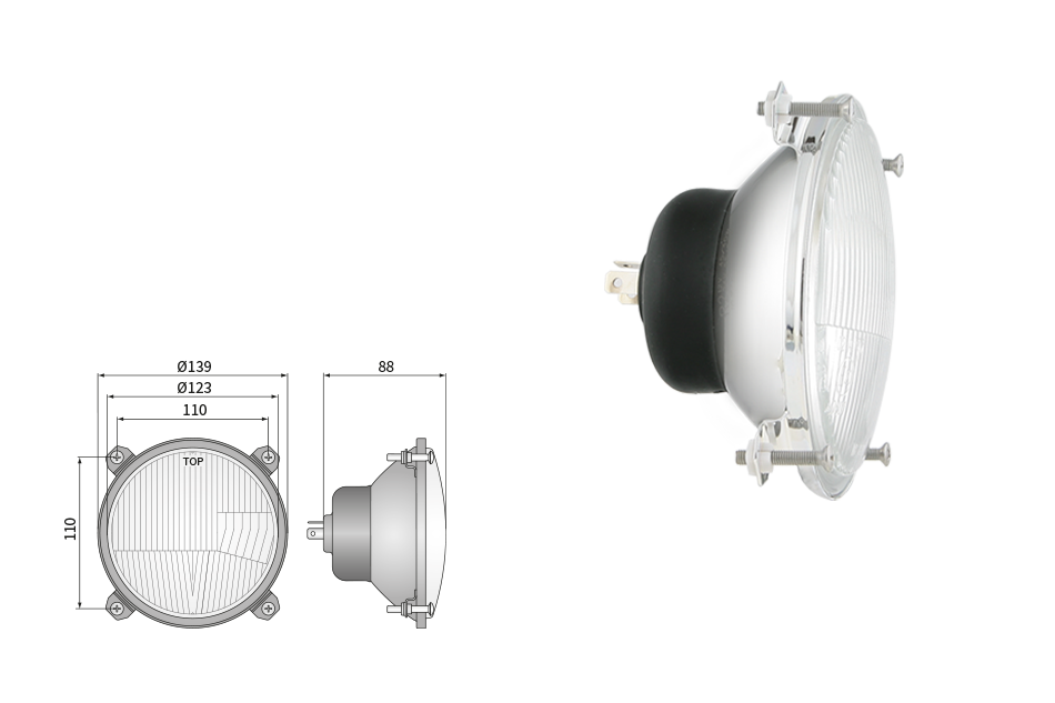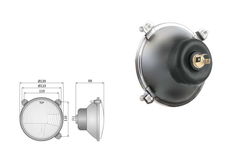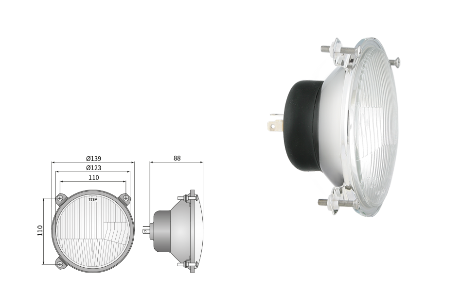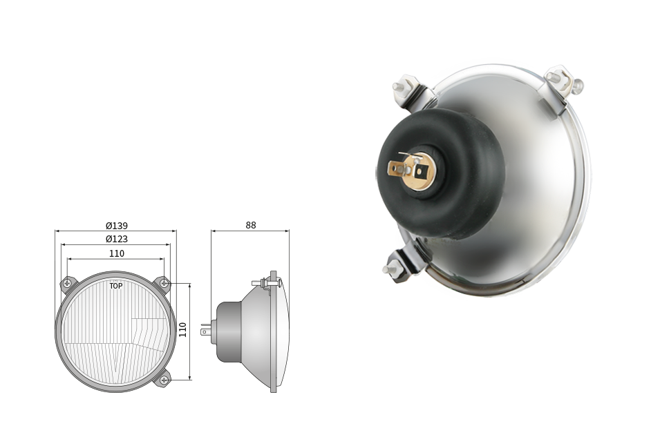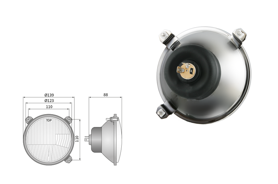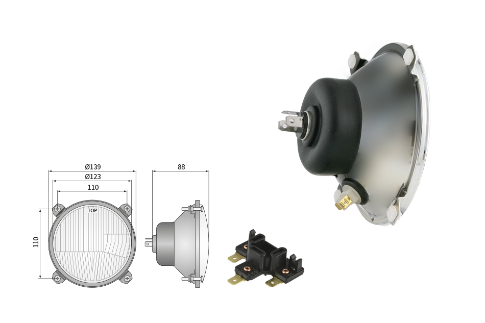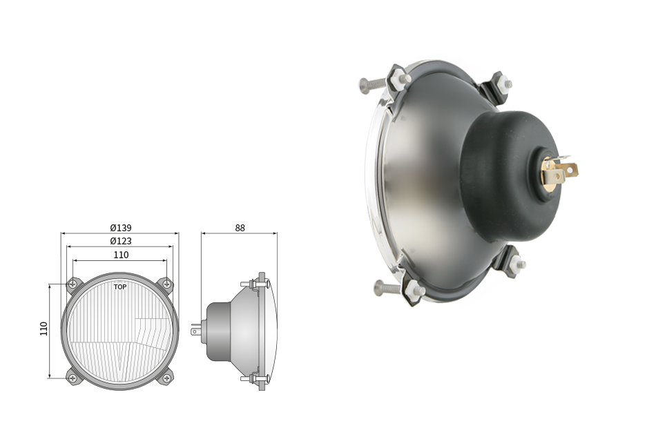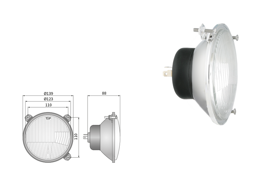 Far pentru, tip R2 - trafic pe partea dreapta (lumini: fază lungă, fază scurtă, poziție)
