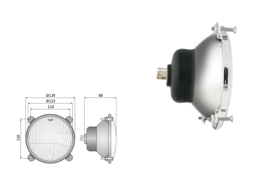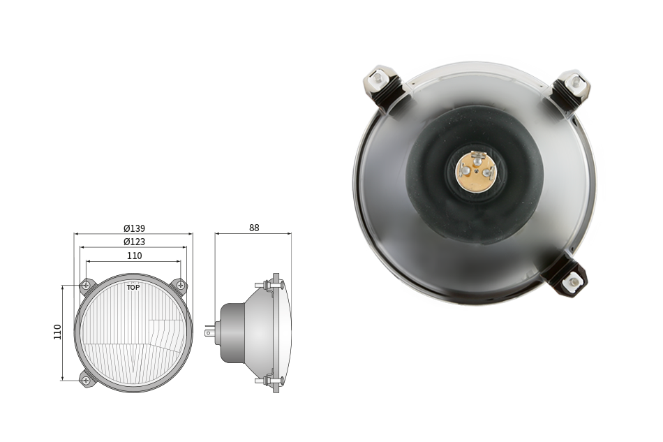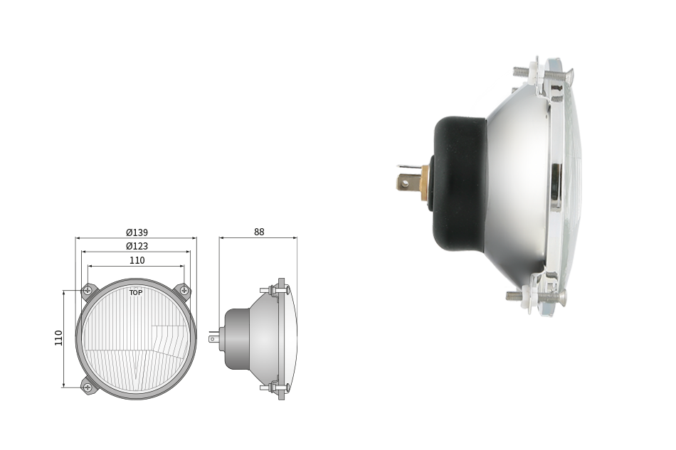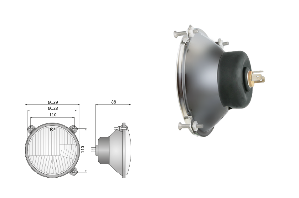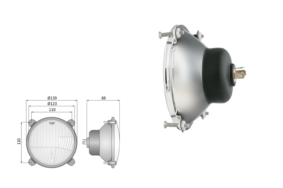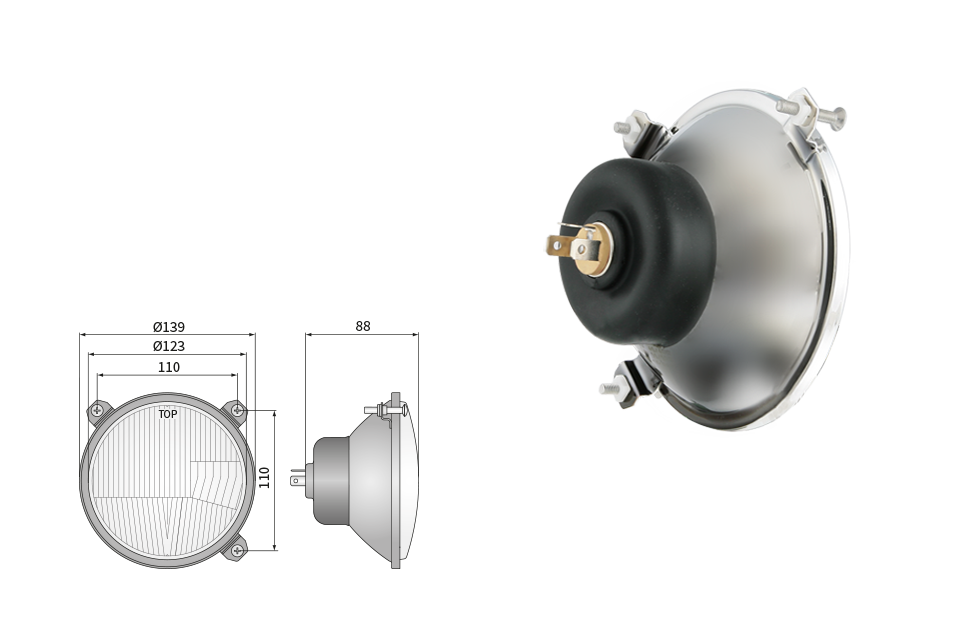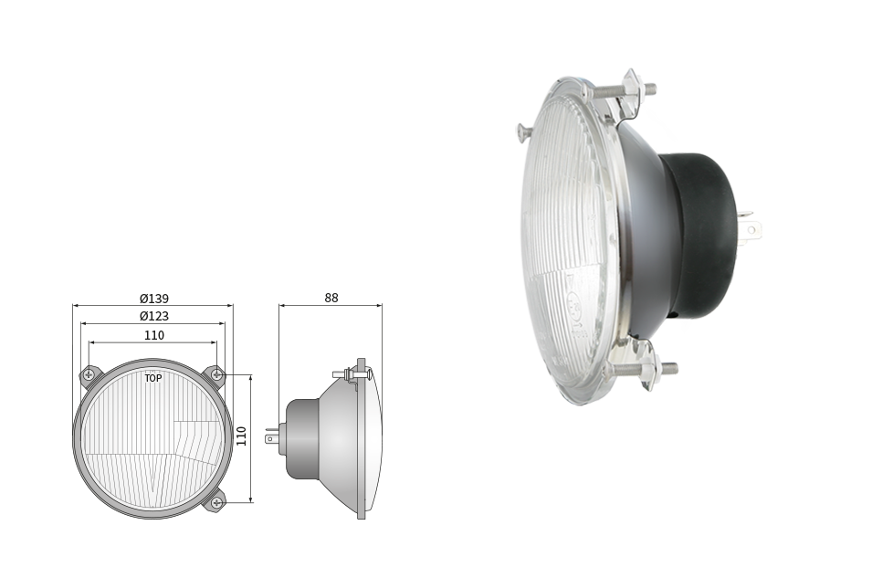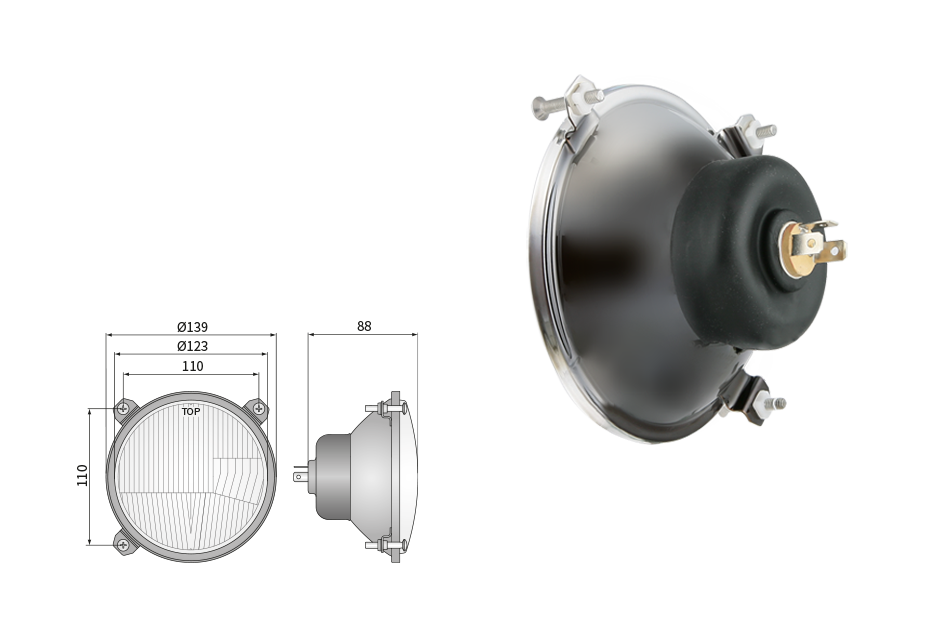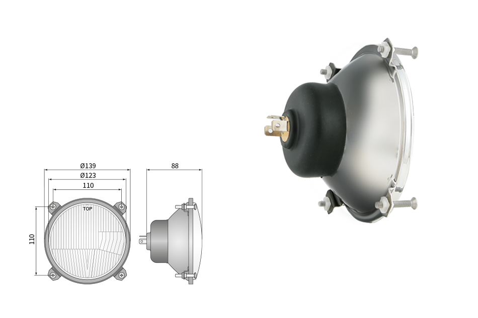 Far pentru, tip R2 - trafic pe partea dreapta (lumini: fază lungă, fază scurtă, poziție)
