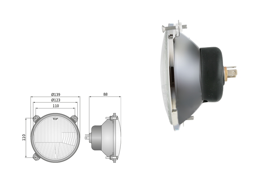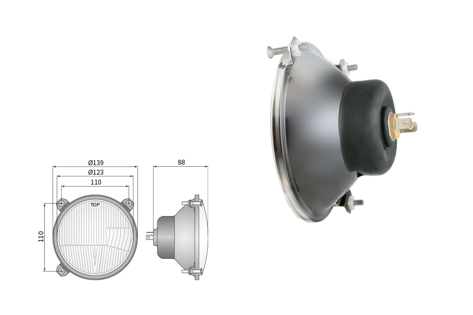 Far pentru, tip R2 - trafic pe partea stângă (lumini: fază lungă, fază scurtă, poziție)